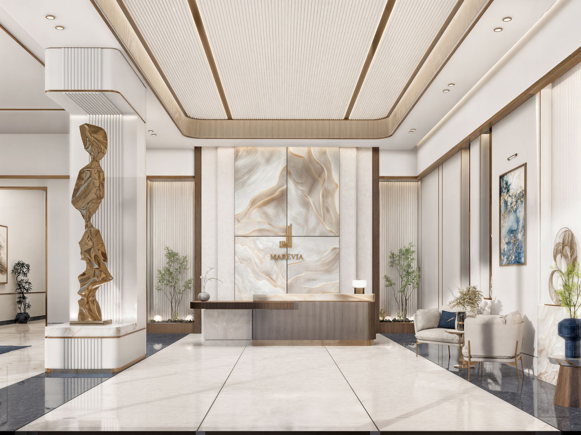 Marevia stands as a bold architectural icon within Dubai Islands. Its sleek lines, floor-to-ceiling glass panels, and refined façade express the height of modern design.
